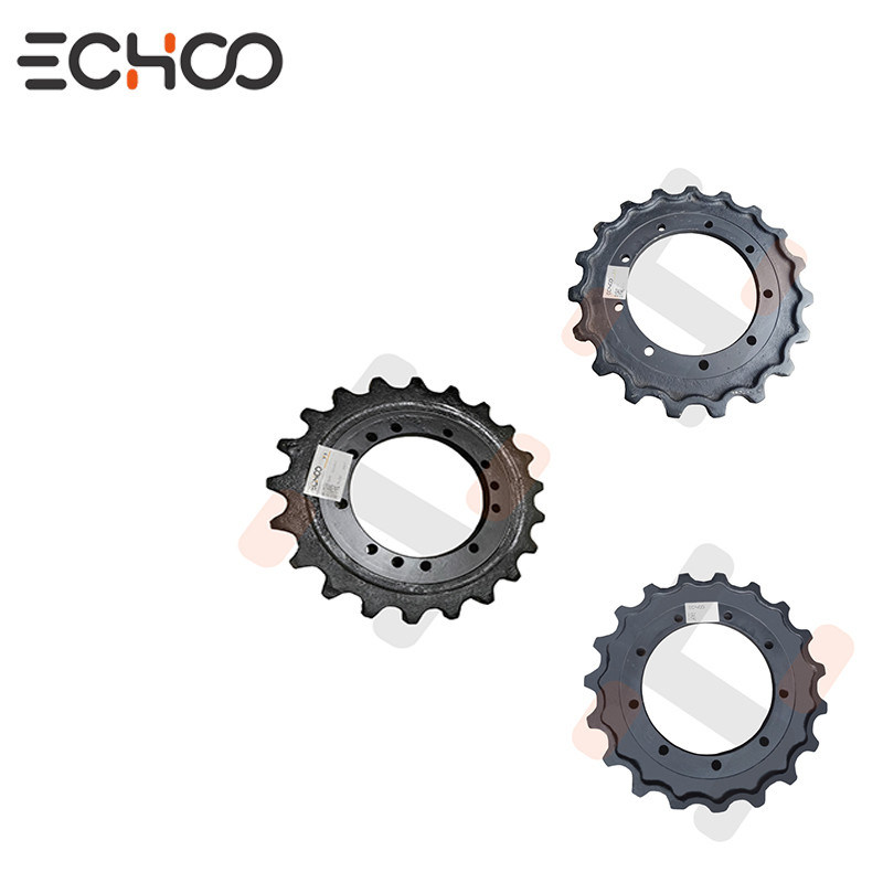 La rueda dentada motriz se enlaza con la cadena de la vía y transmite el par de accionamiento del motor hidráulico correspondiente a la cadena a través de la caja de cambios.el que gira el dispositivo de rastreo y mueve el dispositivo de rastreo.