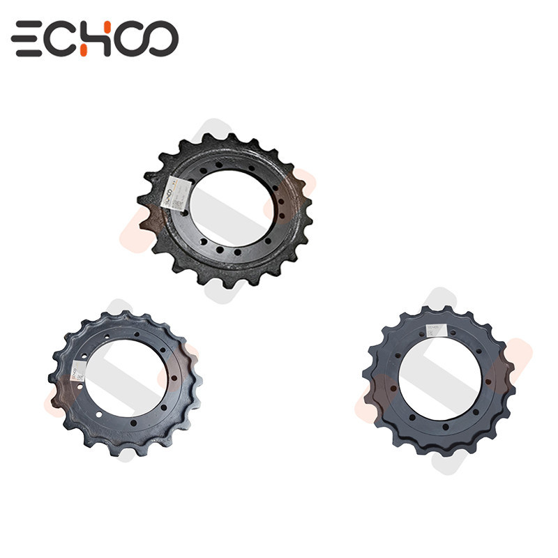 El piñón de accionamiento engrana con la cadena de la oruga y transmite el par de torsión de accionamiento del motor hidráulico correspondiente a la cadena a través de la caja de cambios, rotando así el dispositivo de orugas y moviendo el dispositivo de orugas.