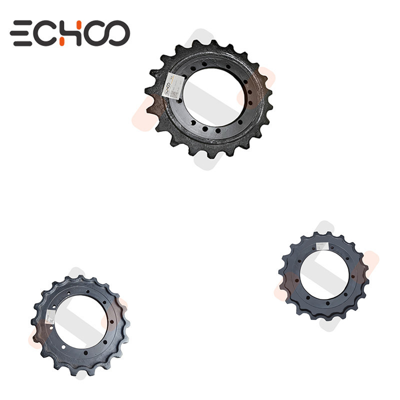El piñón de accionamiento engrana con la cadena de la oruga y transmite el par motor del motor hidráulico correspondiente a la cadena a través de la caja de cambios, lo que hace girar el dispositivo de orugas y moverlo.