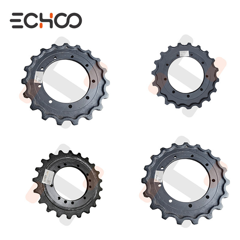 Los engranajes giratorios hacen girar la unidad de vía mediante una malla con la cadena de vía, transmitiendo el par de accionamiento del motor hidráulico correspondiente a la cadena a través de la caja de cambios,que hace que la unidad de la pista se mueva.
