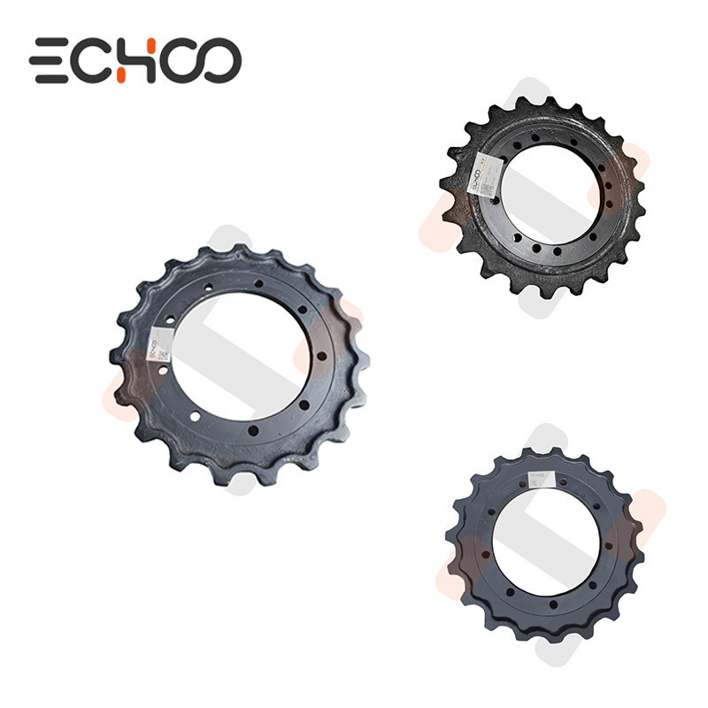 Los engranajes giratorios hacen girar la unidad de vía mediante una malla con la cadena de vía, transmitiendo el par de accionamiento del motor hidráulico correspondiente a la cadena a través de la caja de cambios,que hace que la unidad de la pista se mueva.