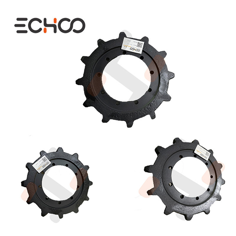 Los engranajes giratorios hacen girar la unidad de vía mediante una malla con la cadena de vía, transmitiendo el par de accionamiento del motor hidráulico correspondiente a la cadena a través de la caja de cambios,que hace que la unidad de la pista se mueva.