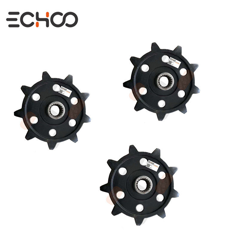 Grupo de vías de acero, vías de caucho, ruedas dentadas, rodillos, pernos y tuercas, amortiguador de caucho, regulador de vías, cadena transportadora, cinta transportadora.