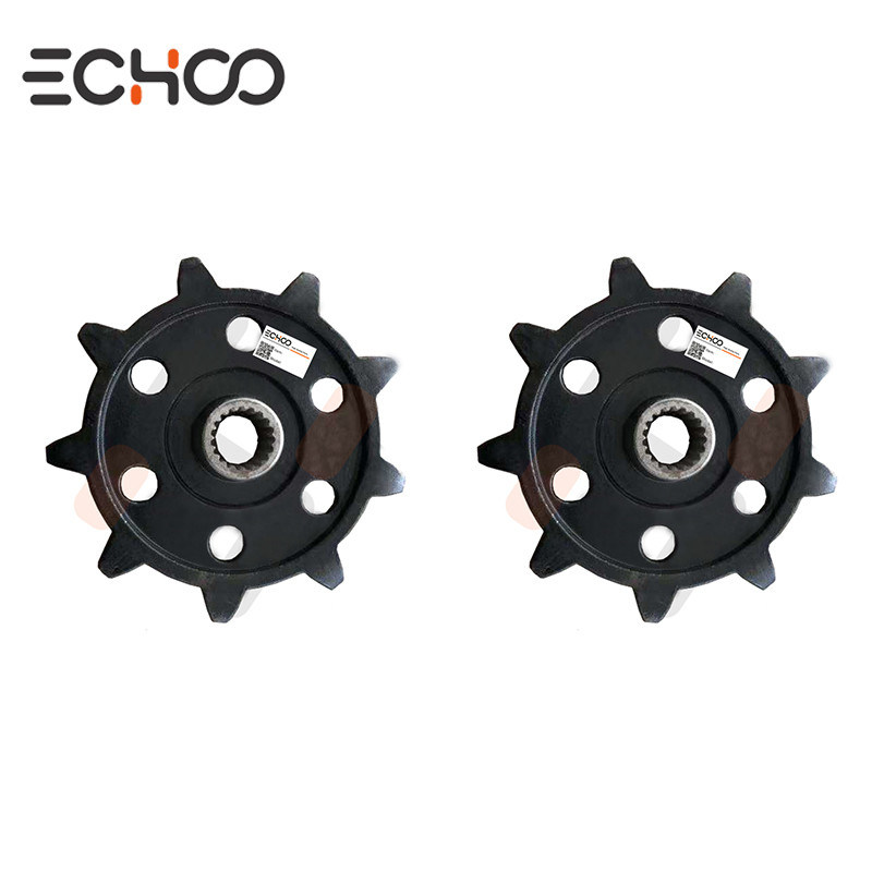 La rueda dentada motriz se enlaza con la cadena de la vía y transmite el par de accionamiento del motor hidráulico correspondiente a la cadena a través de la caja de cambios.el que gira el dispositivo de rastreo y mueve el dispositivo de rastreo.